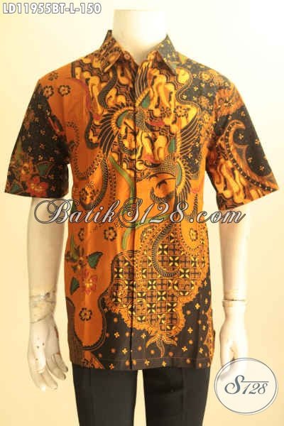 Kemeja Batik Kerja Pria Lengan Pendek Buatan Solo, Batik Hem Halus Motif Elegan Jenis Kombinasi Tulis Bikin Penampilan Terlihat Rapi Dan Menawan [LD11955BT-L]