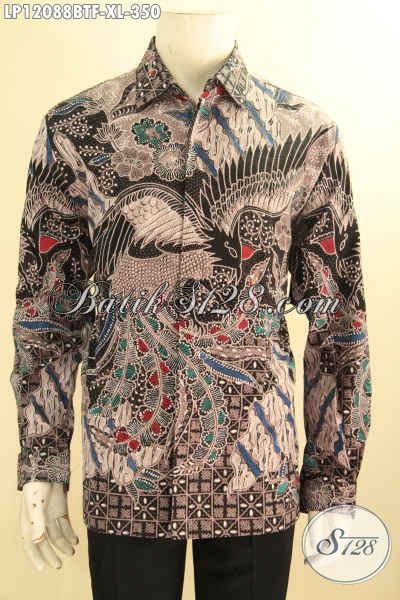 Kemeja Batik Kerja Pria Size XL, Busana Batik Solo Elegan Lengan Panjang Di Lengkapi Lapisan Furing Yang Bikin Penampilan Mewah Gagah Berwibawa [LP12088BTF-XL]