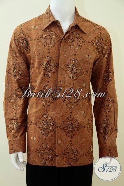 Kemeja Batik Klasik Coklat Model Lengan Panjang Ukuran Besar, Hem Batik Formal Dengan Daleman Full Furing Lebih Nyaman Di Pakai [LP2624BTF-XXL]