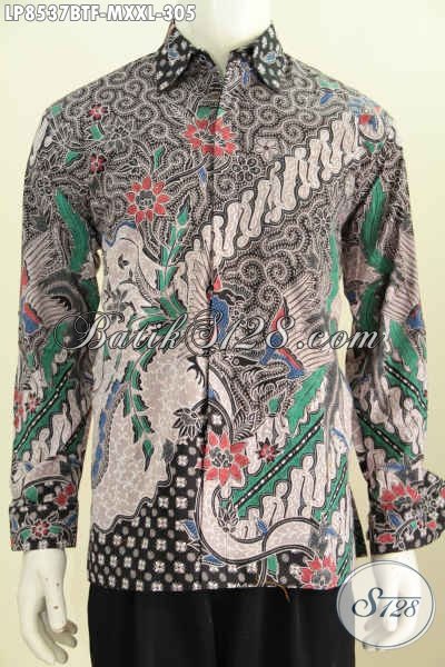 Kemeja Batik Klasik Kombinasi Tulis, Hem Batik Elegan Lengan Panjang Full Furing Buatan Solo, Untuk Kondangan Dan Acara Resmi [LP8537BTF-M , XXL]