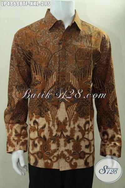 Kemeja Batik Klasik Lengan Panjang Ukuran 3L, Baju Batik Jumbo Pria Gemuk Cocok Buat Kerja Dan Acara Formal Daleman Full Furing Proses Kombinasi Tulis [LP4868BTF-XXL]