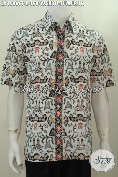 Kemeja Batik Klasik Lengan Pendek Wahyu Tumurun Proses Cap Tulis, Busana Batik Seragam Kerja Lelaki Kantoran Tampil Gagah Dan Elegan [LD4906CT-L]