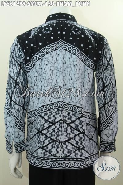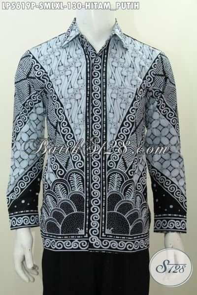 Kemeja Batik Klasik Proses Printing Warna Hitam Putih, Baju Batik Elegan Untuk Pria Muda Dan Dewasa Tampil Gagah Dan Terlihat Mempesona [LP5619P-XL]