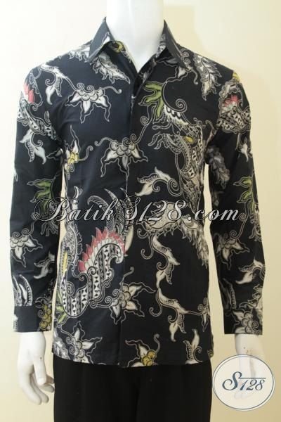 Kemeja Batik Kombinasi Tulis Warna Hitam, Baju Batik Elegan Lengan Panjang Ukuran M, Batik Motif Modern Tampil Modis [LPD4107BT-M]