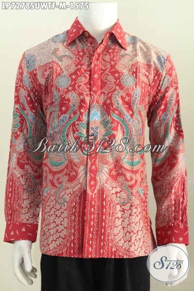 Kemeja Batik Lengan Panjang Mewah, Pakaian Batik Solo Halus Bahan Sutra Twis Model Lengan Panjang Motif Bagus Harga 1.5 Jutaan [LP7278SUWTF-M]
