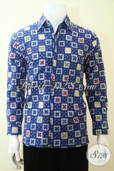 Kemeja Batik Lengan Panjang Warna Biru Motif Keren Terkini, Baju Batik Cap Buatan Solo Kwalitas Halus Harga Lebih Terjangkau [LP3632C-S]