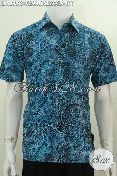 Kemeja Batik Lengan Pendek Biru Gradasi, Busana Batik Halus Proses Cap Smoke Motif Bunga Matahari Untuk Anak Muda Tampil Gaya Dan Trendy [LD5292CS-S , M , L , XL , XXL]