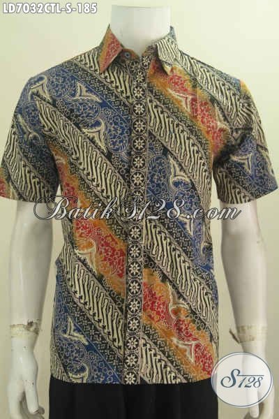 Kemeja Batik Lengan Pendek Halus Motif Klasik Warna Mewah Cap Tulis Lasem, Pakaian Batik Istimewa Buat Pria Tampil Lebih Sempurna [LD7032CTL-S]