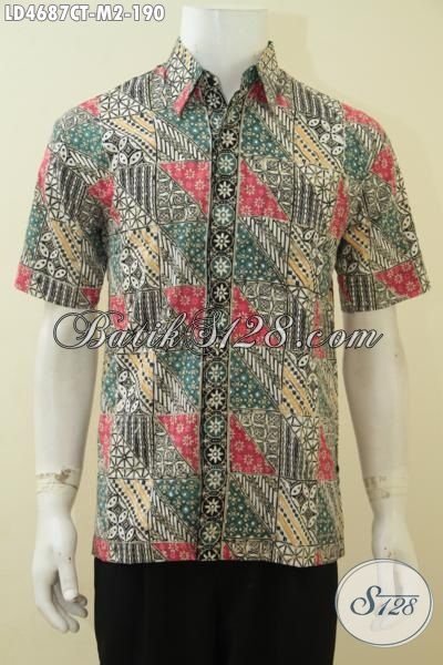 Kemeja Batik Lengan Pendek Motif Terbaru Yang Trendy Dan Modis, Pakaian Batik Pria Muda Proses Cap Tulis Untuk Tampil Gaul Dan Keren [LD4687CT-M]