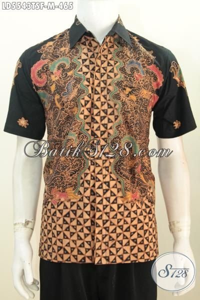 Kemeja Batik Lengan Pendek Premium Proses Tulis Soga Dengan Motif Mewah Untuk Penampilan Pria Lebih Gagah, Jual Onine Batik Halus Full Furing Khas Jawa Tengah Harga 400 Ribuan [LD5543TSF-M]