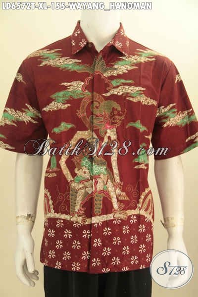 Kemeja Batik Merah Halus Proses Tulis, Pakaian Batik Istimewa Dari Solo Motif Wayang Hanoman Harga 155K Model Lengan Pendek [LD6572T-XL]