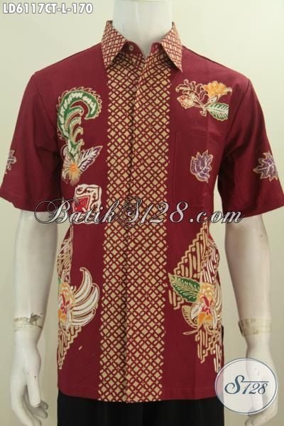 Kemeja Batik Merah Marun Motif Unik Dan Trendy Berbahan Halus Proses Cap Tulis Model Lengan Pendek Untuk Pria Terlihat Modis Dan Menawan [LD6117CT-L]