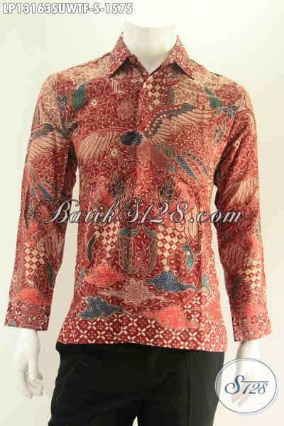 Kemeja Batik Mewah Bahan Sutra Twis Untuk Pria Sukses, Busana Batik Tulis Asli Khas Solo Model Lengan Panjang Full Furing, Tampil Lebih Gagah Dan Berwibawa [LP13163SUWTF-S]