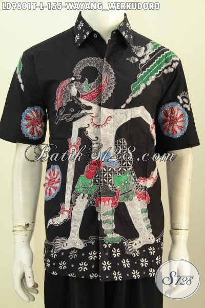 Kemeja Batik Modern Motif Wayang Werkudoro, Baju Batik Tulis Modis Lengan Pendek Dasar Hitam, Penampilan Elegan Dan Menawan [LD9601T-L]