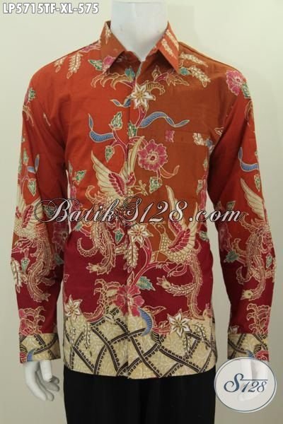 Kemeja Batik Motif Bunga Proses Tulis, Baju Batik Mewah Lengan Panjang Full Furing Warna Orange Untuk Lelaki tampil Modis Dan Ganteng Maksimal [LP5715TF-XL]