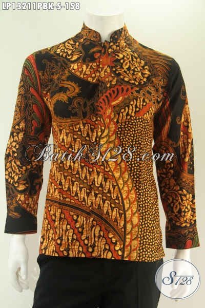 Kemeja Batik Motif Elegan Model Lengan Panjang Kerah Shanghai, Baju Batik Koko Untuk Cowok Masa Kini Pas Buat Acara Resmi [LP13211PBK-S]