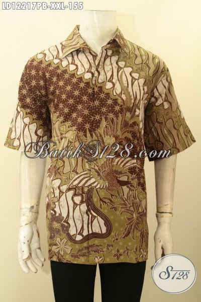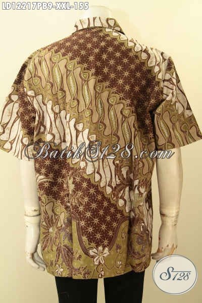 Kemeja Batik Motif Elegan Model Lengan Pendek, Busana Batik Big Size Untuk Lelaki Gemuk Bahan Halus Kwalitas Istmiwa Dengan Harga Terjangkau [LD12217PB-XXL]