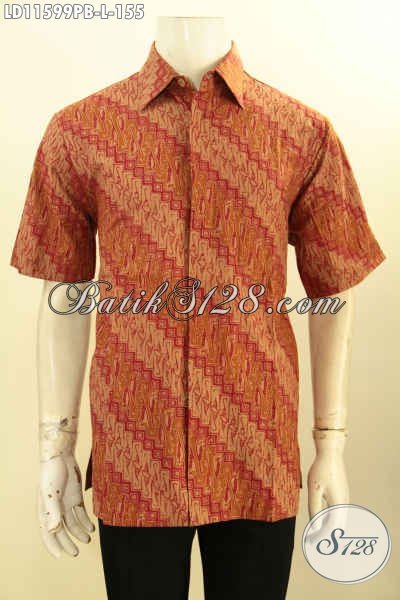 Kemeja Batik Motif Parang Lengan Pendek, Busana Batik Elegan Nan Istimewa Bahan Halus Proses Printing Cabut Yang Membuat Pria Terlihat Gagah Berkelas Hanya Dengan 100 Ribuan [LD11599PB-L]