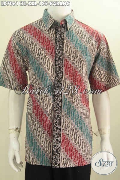 Kemeja Batik Parang 3L Halus Dengan Kombinasi Warna Trendy Asli Buatan Solo Proses Cap Tulis Lasem Pas Buat Lelaki Dewasa [LD7061CTL-XXL]
