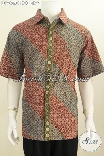 Kemeja Batik Parang Dengan Kombinasi Warna Trendy Dan Berkelas, Produk Busana Batik Solo Kwalitas Halus Proses Cap Tulis Edisi Sepsial Untuk Pria Gemuk Ukuran 3L [LD5969CT-XXL]
