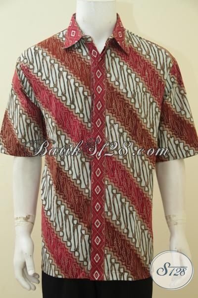 Kemeja Batik Parang Kombinasi Merah Dan Putih, Pakaian Batik Elegan Size 3L, Batik Mewah Harga Terjangkau Pria Gemuk Lebih Berkelas [LD4598CT-XXL]