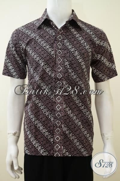 Kemeja Batik Parang Warna Kombinasi Putih Coklat Pria Tampil Elegan Berwibawa, Hem Batik Lengan Pendek Proses Cap Tulis Trend Mode masa Kini [LD3173CT-XL]