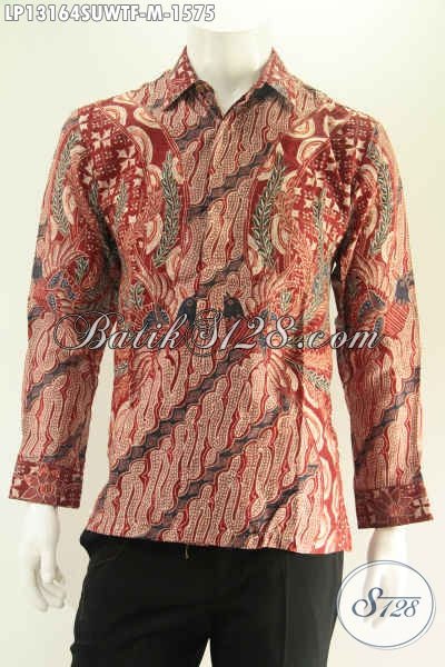 Kemeja Batik Premium Khas Eksekutif Model Lengan Panjang Tulis Asli, Berbahan Sutra Twis Daleman Full Furing Bikin Penampilan Lebih Percaya Diri [LP13164SUWTF-M]