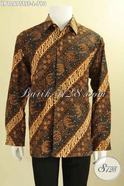 Kemeja Batik Premium Khas Pejabat, Busana Batik Mewah Lengan Panjang Motif Klasik Jenis Tulis Soga Daleman Full Furing, Penampilan Terlihat Gagah Berwibawa [LP12675TSF-L]