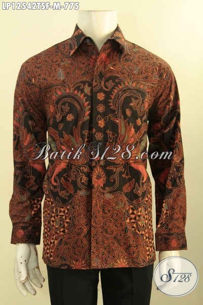 Kemeja Batik Premium Khas Solo Jenis Tulis Soga, Baju Batik Istimewa Model Lengan Panjang Full Furing Bahan Halus Desain Mewah Bikin Penampilan Gagah Berwibawa [LP12542TSF-M]