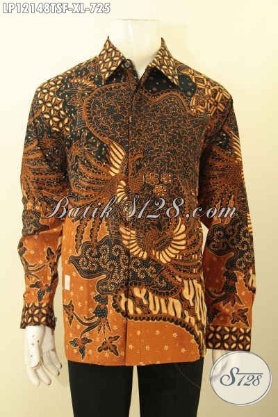 Kemeja Batik Premium Lelaki Dewasa, Busana Batik Tulis Soga Mewah Model Lengan Panjang Daleman Pakai Furing, Bisa Untuk Kondangan Maupun Seragam Kantor [LP12148TSF-XL]