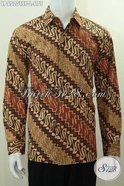 Kemeja Batik Premium Lengan Panjang Motif Parang, Baju Batik Tulis Soga Full Furing Ukuran L Pas Banget Untuk Rapat Dan Kondangan [LP5520TSF-L]