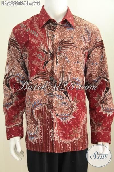 Kemeja Batik Premium Merah Dengan Motif Bagus Trend Terkini, Baju Batik Elegan Lengan Panjang Proses Tulis Tangan Di Lengkapi Daleman Full Furing Untuk Kerja Dan Dan Acara Formal [LP5385TF-XL]