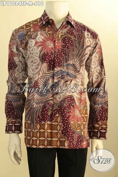 Kemeja Batik Premium Nan Mewah, Busana Batik Elegan Berkelas Untuk Eksekutif Muda Tampil Gagah Menawan, Bahan Adem Model Lengan Panjang Full Furing Motif Tulis Asli [LP11084TF-M]