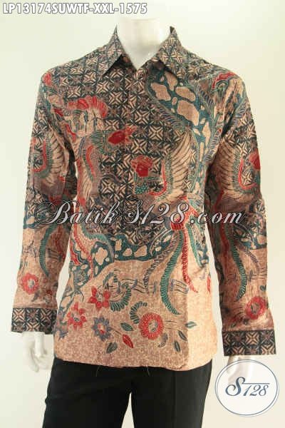 Kemeja Batik Pria Big Size XXL Kwalitas Premium Model Lengan Panjang Full Furing, Busana Batik Sutra Nan Berkelas Motif Elegan Tulis Asli Untuk Acara Resmi [LP13174SUWTF-XXL]