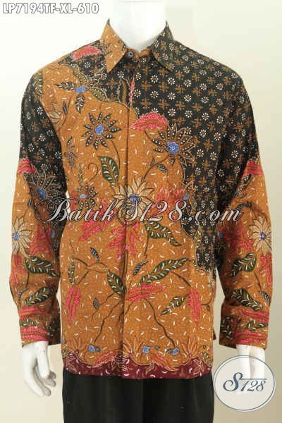 Kemeja Batik Pria Dewasa, Hem Batik Ukuran XL Mewah Motif Full Tulis Model Lengan Panjang Pakai Furing Untuk Penampilan Yang Sempurna [LP7194TF-XL]