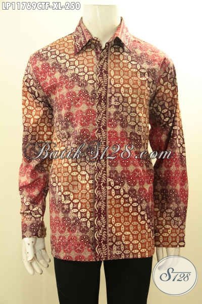 Kemeja Batik Pria Dewasa Nan Elegan, Busana Batik Solo Asli Full Furing Bahan Adem Motif Klasik Proses Cap Tulis, Tampil Gagah Berwibawa [LP11769CTF-XL]