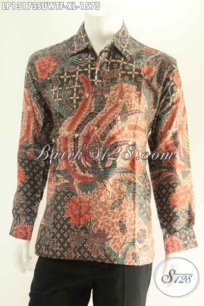 Kemeja Batik Pria Dewasa Untuk Acara Resmi Dan Ke Kondangan, Berbahan Mewah Sutra Twis Model Lengan Panjang Motif Elegan Proses Tulis Daleman Full Furing, Tampil Makin Percaya Diri [LP13173SUWTF-XL]
