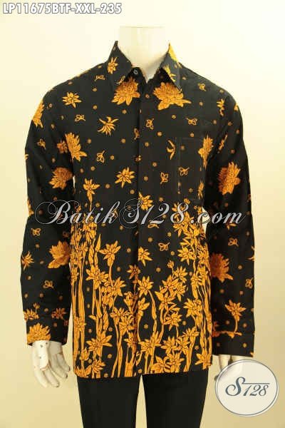 Kemeja Batik Pria Gemuk, Busana Batik Solo Modis Terkini, Hem Batik Lengan Panjang Big Size Daleman Lapisan Furing Bikin Penampilan Gagah Dan Mewah [LP11675BTF-XXL]