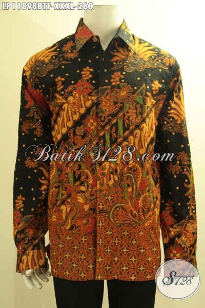 Kemeja Batik Pria Gemuk Sekali, Busana Batik Solo Jawa Tengah Tangan Panjang Motif Bagus Proses Kombinasi Tulis Pakai Furing, Penampilan Lebih Berkelas Dan Istimewa [LP11898BTF-XXXL]