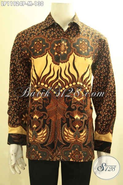 Kemeja Batik Pria Lengan Panjang Halus Motif Elegan, Busana Batik Solo Asli Harga Murah Meriah Kwalitas Mewah Proses Printing, Cocok Untuk Acara Resmi [LP11924P-M]