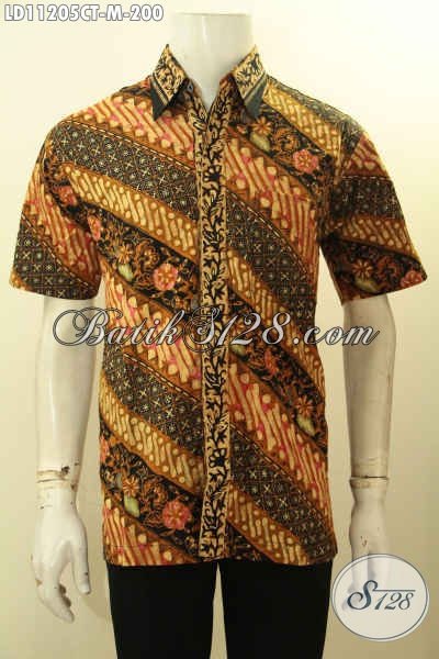 Kemeja Batik Pria Lengan Pendek Elegan Motif Klasik Proses Cap Tulis, Tampil Gagah Dan Tampan, Pas Buat Ngantor Dan Kondangan [LD11205CT-M]