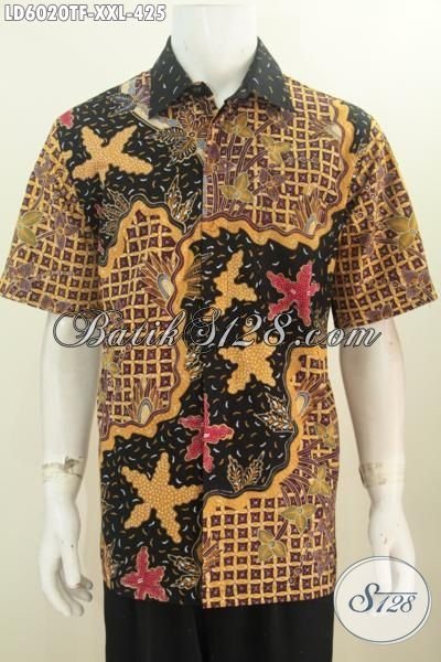 Kemeja Batik Pria Motif Terbaru, Produk Pakaian Batik Berkelas Bahan Adem Proses Tulis Model Lengan Pendek Daleman Full Furing Ukuran 3L Buat Lelaki Gemuk [LD6020TF-XXL]