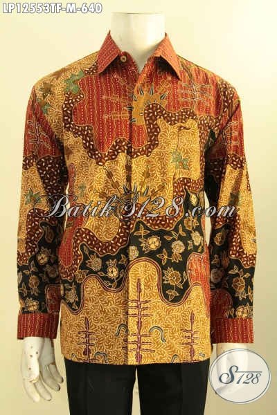 Kemeja Batik Pria Muda Lengan Panjang Jenis Tulis, Baju Batik Istimewa Motif Elegan Desain Mewah Pakai Furing, Cocok Buat Ke Kondangan [LP12553TF-M]