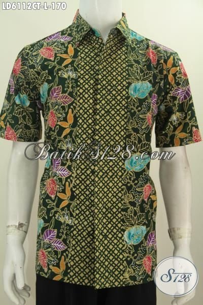 Kemeja Batik Pria Size L, Hem Batik Halus Proses Cap Tulis Berbahan Adem Model Lengan Pendek Warna Hijau Harga 100 Ribuan [LD6112CT-L]