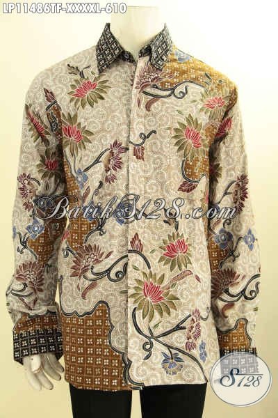 Kemeja Batik Pria Super Jumbo, Pakaian Batik Cowok Gemuk Sekali Ukuran L5, Pakaian Batik Tulis Mewah Halus Lengan Panjang Full Furing, Istimewa Untuk Acara Resmi [LP11486TF-XXXXL]