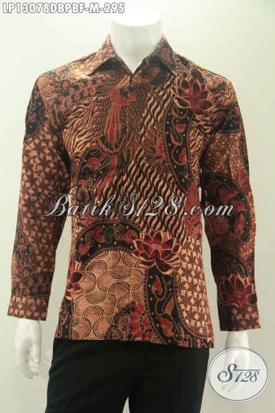 Kemeja Batik Pria Terbaru Desain Formal Nan Berkelas Berpadu Motif Elegan Jenis Print Cabut Model Lengan Panjang Bahan Kain Dolby Halus Seperti Sutra ATBM Daleman Full Furing Hanya 295K [LP13078DBPBF-M]