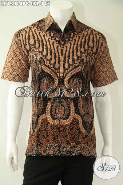 Kemeja Batik Pria Terbaru Motif Tren Masa Kini, Produk Busana Batik Cowok Model Lengan Pendek Asli Buatan Solo, Bisa Untuk Santai Maupun Resmi [LD13014PB-XL]