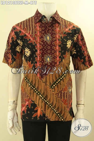 Kemeja Batik Pria Terkini, Busana Batik Halus Lengan Pendek Spesial Untuk Lelaki Muda, Desain Terbaru Motif Elegan Tulis Lasem Daleman Full Furing, Pas Buat Kerja Dan Acara Resmi [LD12138TSF-M]