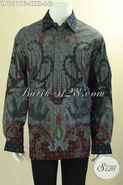 Kemeja Batik Solo Elegan Model Lengan Panjang, Baju Batik Premium Khas Jawa Tengah Motif Mewah Proses Tulis Tampil Exclusive Dengan Daleman Full Furing [LP12711TF-XXXL]