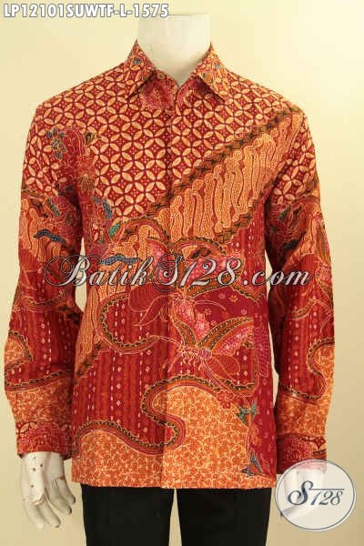 Kemeja Batik Solo Elegan Terkini, Pakaian Batik Mewah Jawa Tengah Halus Full Furing Desain Bagus, Busana Batik Premium Tulis Sutra Khas Solo Harga Terjangkau [LP12101SUWTF-L]